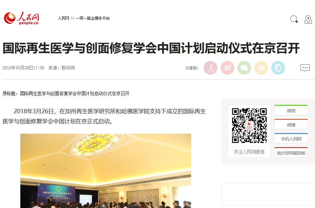 人民網(wǎng):國際再生醫(yī)學與創(chuàng)面修復(fù)學會中國計劃啟動儀式在京召開